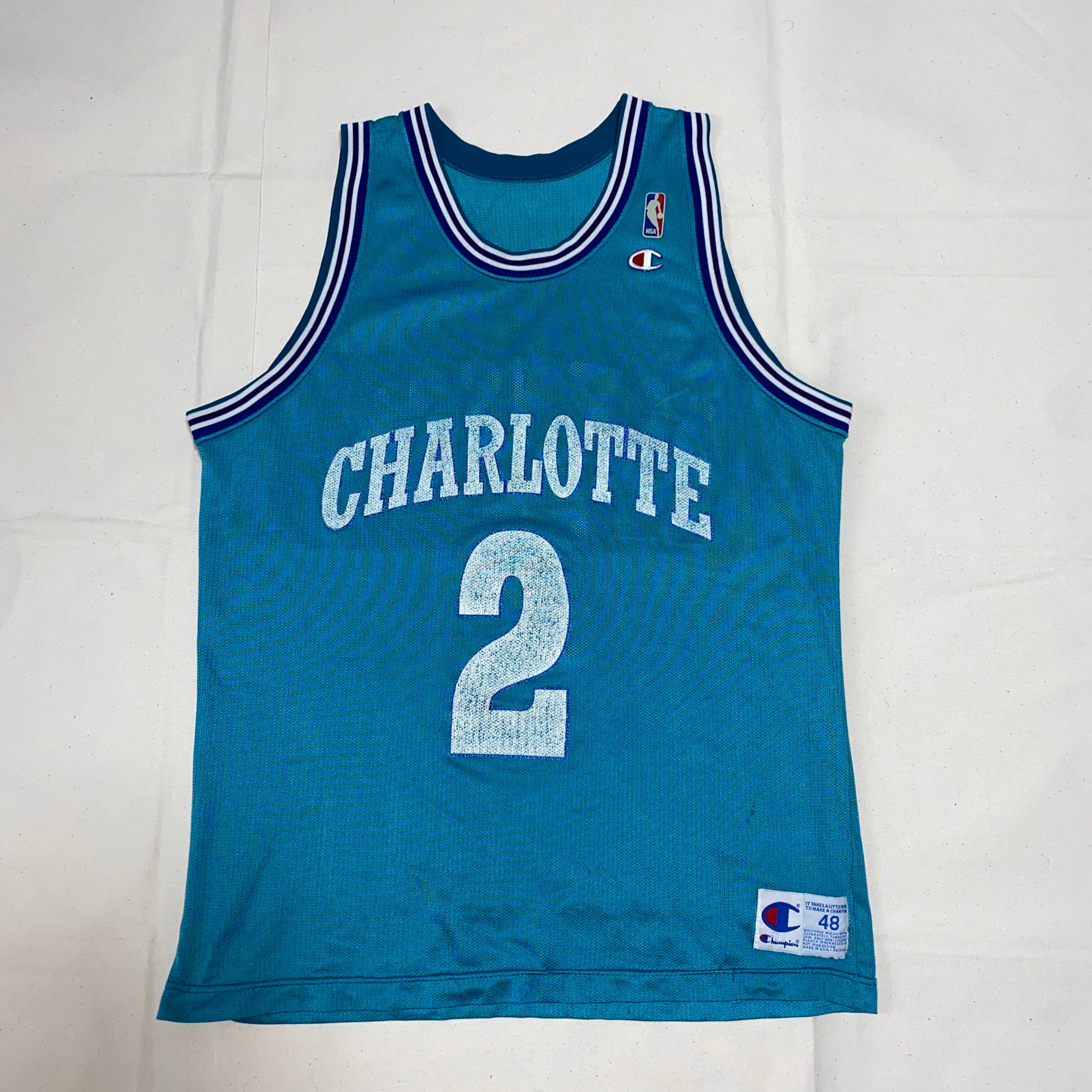 【90s champion NBA】“CHARLOTTE HORNETS Larry Johnson”game shirt C97